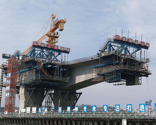 掛藍施工是現(xiàn)澆橋梁施工方案中的一種,按掛藍主桁架結(jié)構(gòu)型式可分為菱形掛藍和三角形掛藍,其中菱形掛藍具有受力合理、滑動式走行、尾部無配重、一次走行到位、重量輕、安裝簡易、適應(yīng)能力強、安裝方便、施工造價低等特點,適用于各種斷面及跨度的整孔現(xiàn)澆橋梁的施工。
